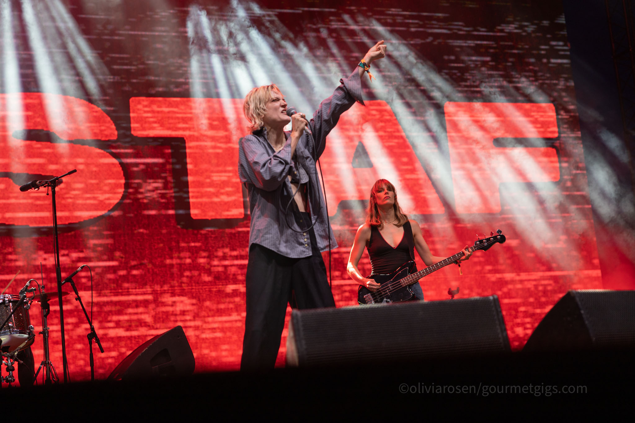The closing Sunday at All Points East, on 25th August, was mainly dedicated to retro indie bands for a wander down nostalgia lane. Teenage Fan Club, The Lemon Twigs, Sleater-Kinney, The Postal Service/Death Cab for Cutie all played the East and West stages. The smaller stages at the centre of the park mostly featured rising bands like art band Gustaf.