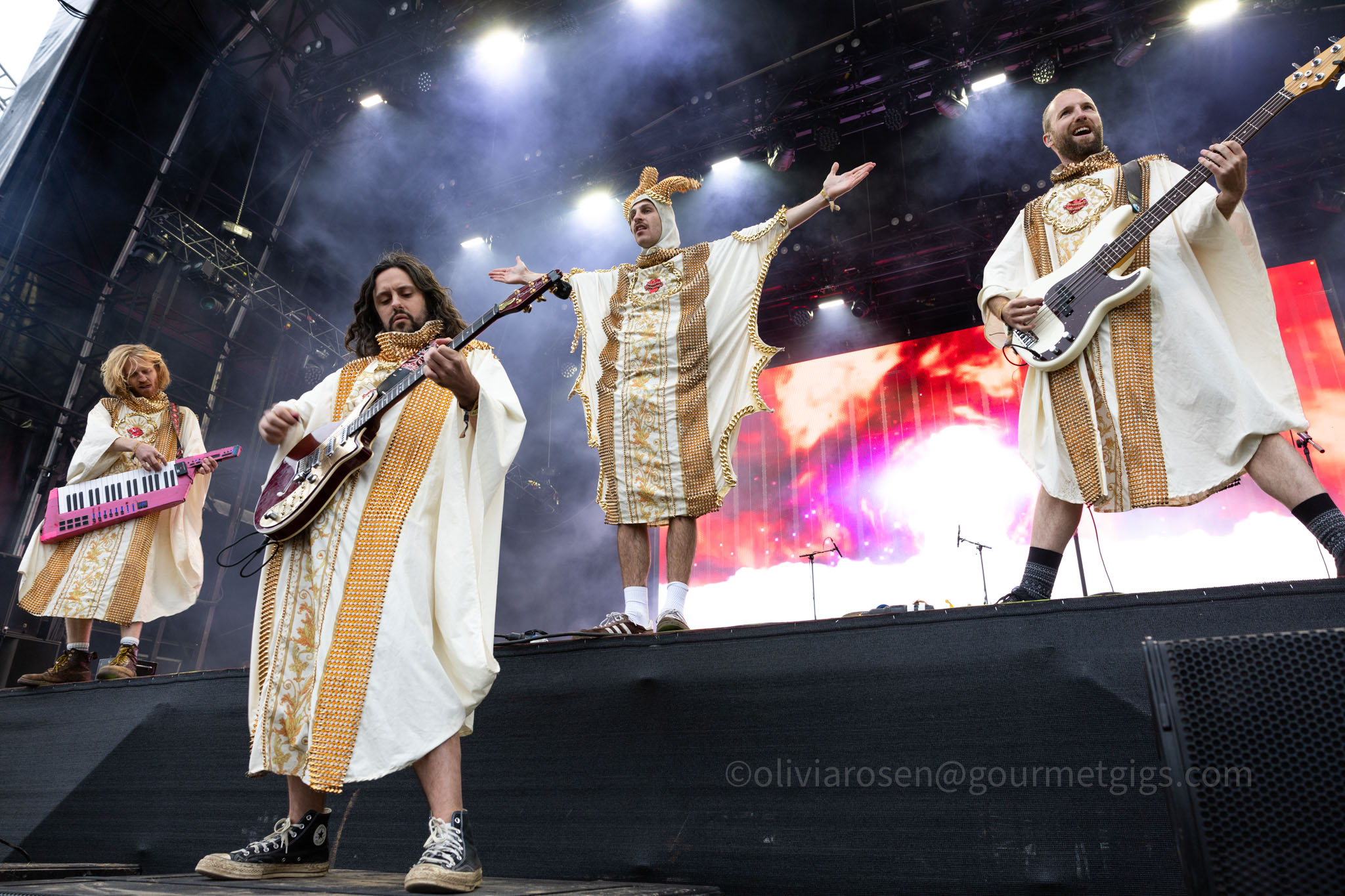 Two of the stages were open on Thursday afternoon, the Pallet main stage and Convoy Cabaret standing in for the Woodland Stage which was suffering from the recent rainfall. The energetic Australian band Battlesnake took the prize for most visually striking and amusing act. At Convoy Cabaret, a sizeable crowd gathered to bask in the soothing spaciness of Bleach Lab’s set in the cocooned atmosphere of the tent.