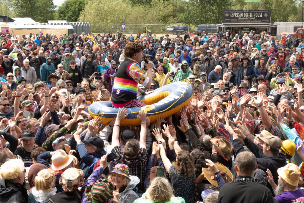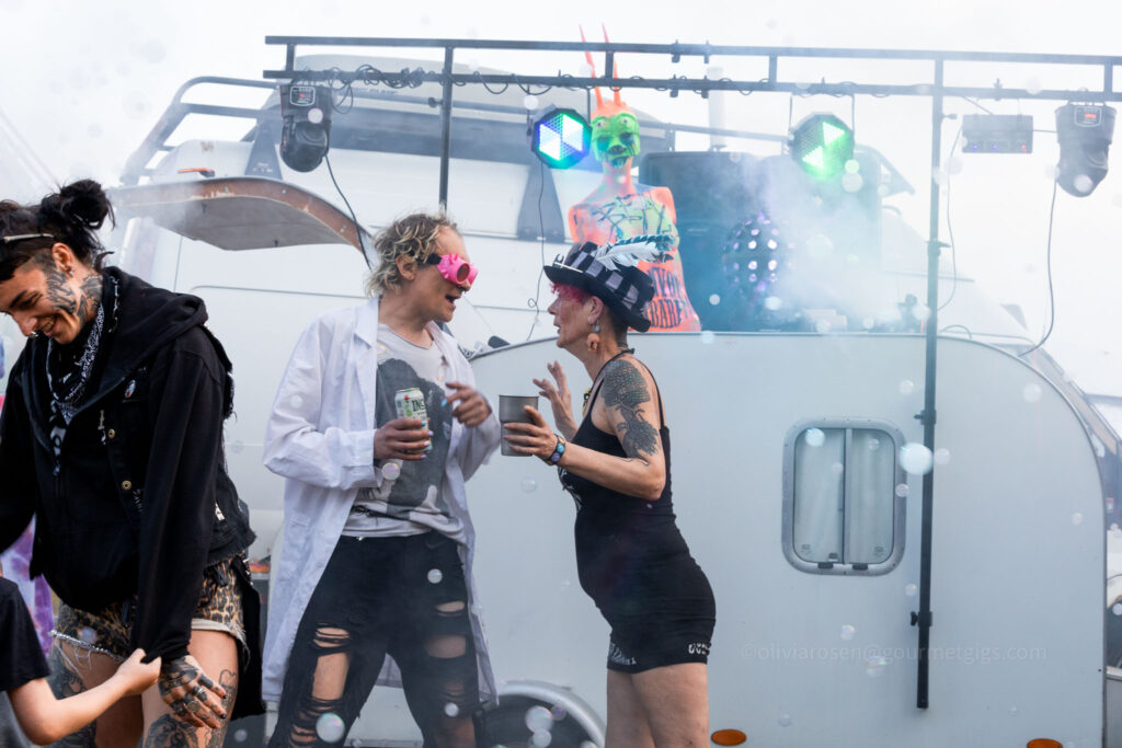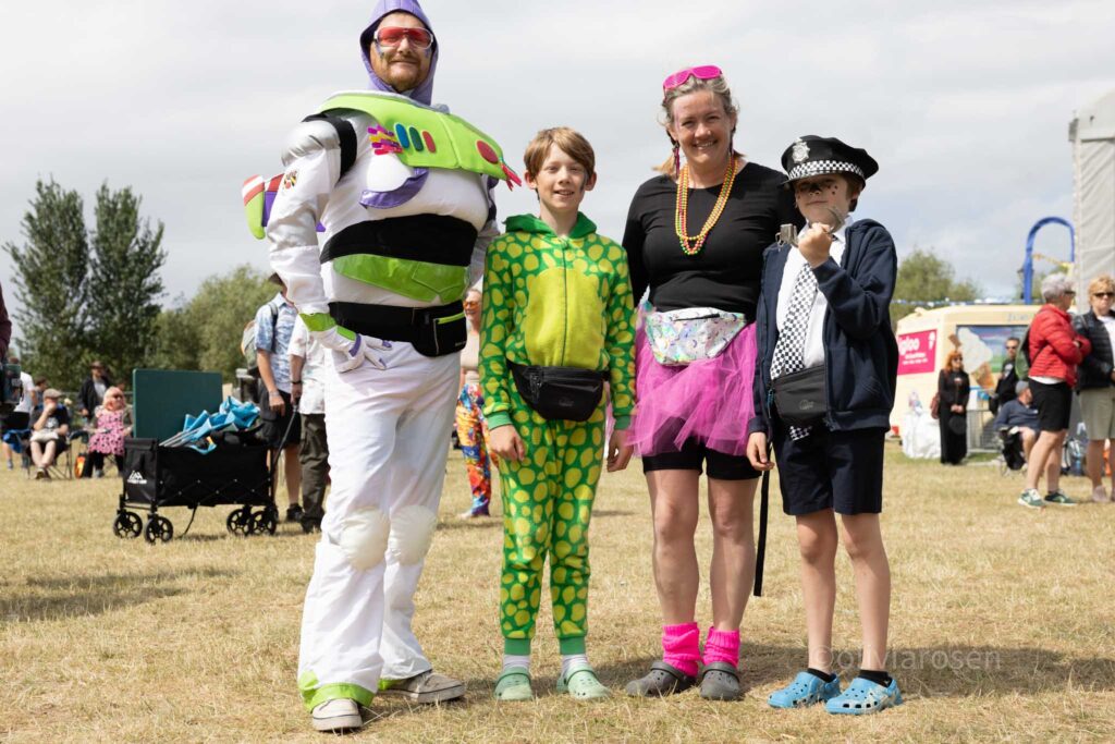 Sunday is fancy dress competition day – keep a look-out for the theme announcement for 2026. If you’re spotted in the crowd and get hauled out on stage, you just might win yourselves tickets to the following year’s shindig. Last year’s fabulous winners are the two ladies pictured top left – interpreting ‘Teenage Dreams’ in their own, very imaginative way.