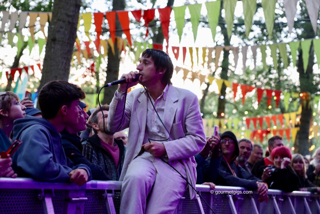 Bearded Theory’s old timers… Some artists make their way onto the BT lineup time after time again… such as New Model Army, with lead man Justin Sullivan having appeared solo too. Ferocious Dog with their energetic folk-punk, ditto Three Daft Monkeys are also regular returnees. Popular troubadour Beans on Toast shows up fairly regularly and he has a new album called The Toothpaste and the Tube to showcase. Other welcome returnees are Bob Vylan, who the Beardie crowd took to their hearts last year, ska act [spunge], feisty Panic Shack, who put on an energetic debut show, and LIINES who we interviewed as they came off stage in 2022.