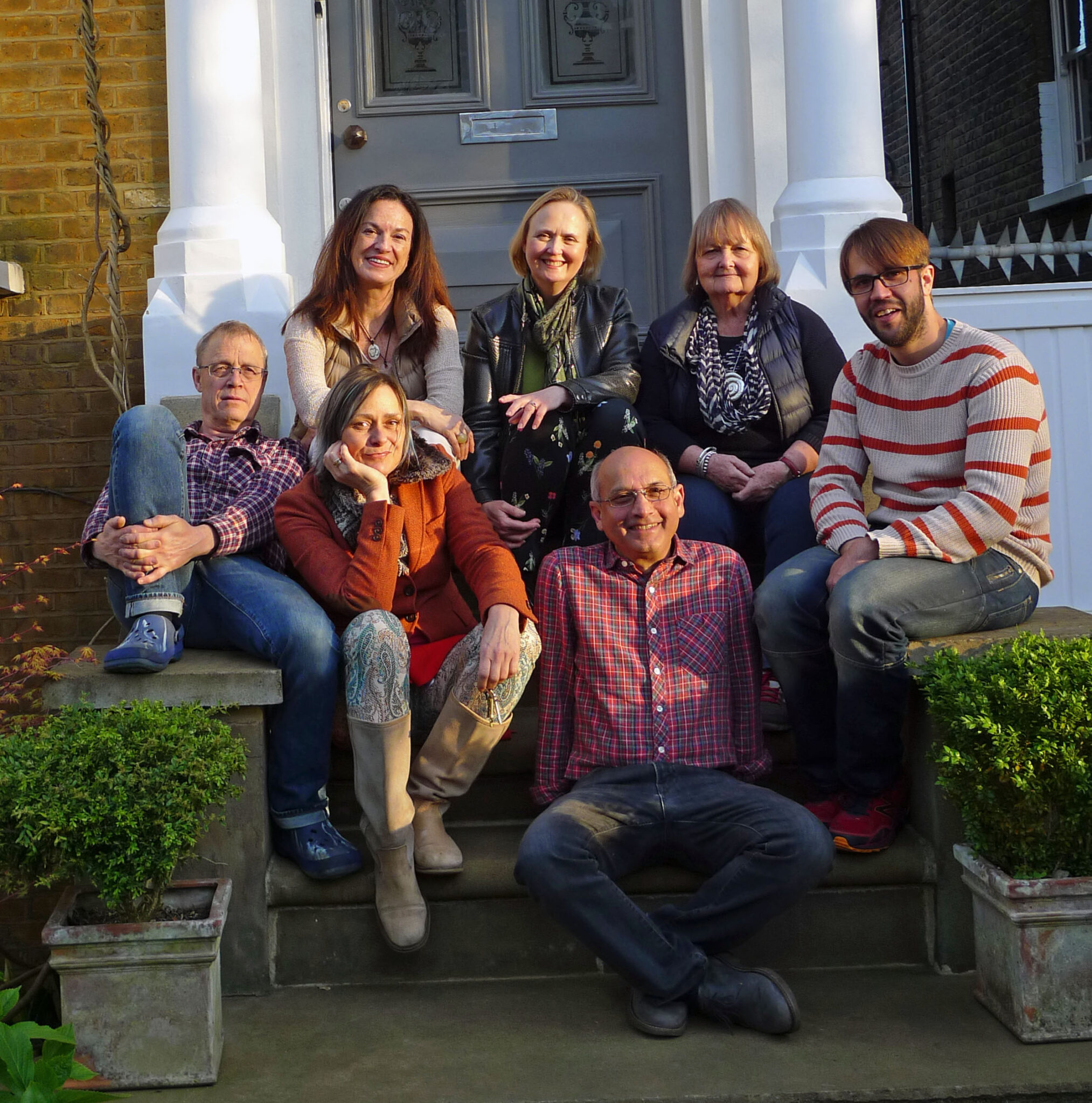 Photo (top): Ahmed on the steps of the house with the artists.